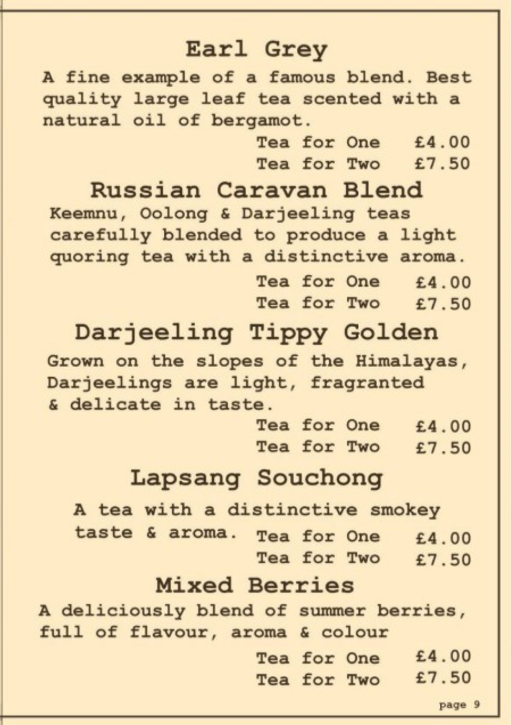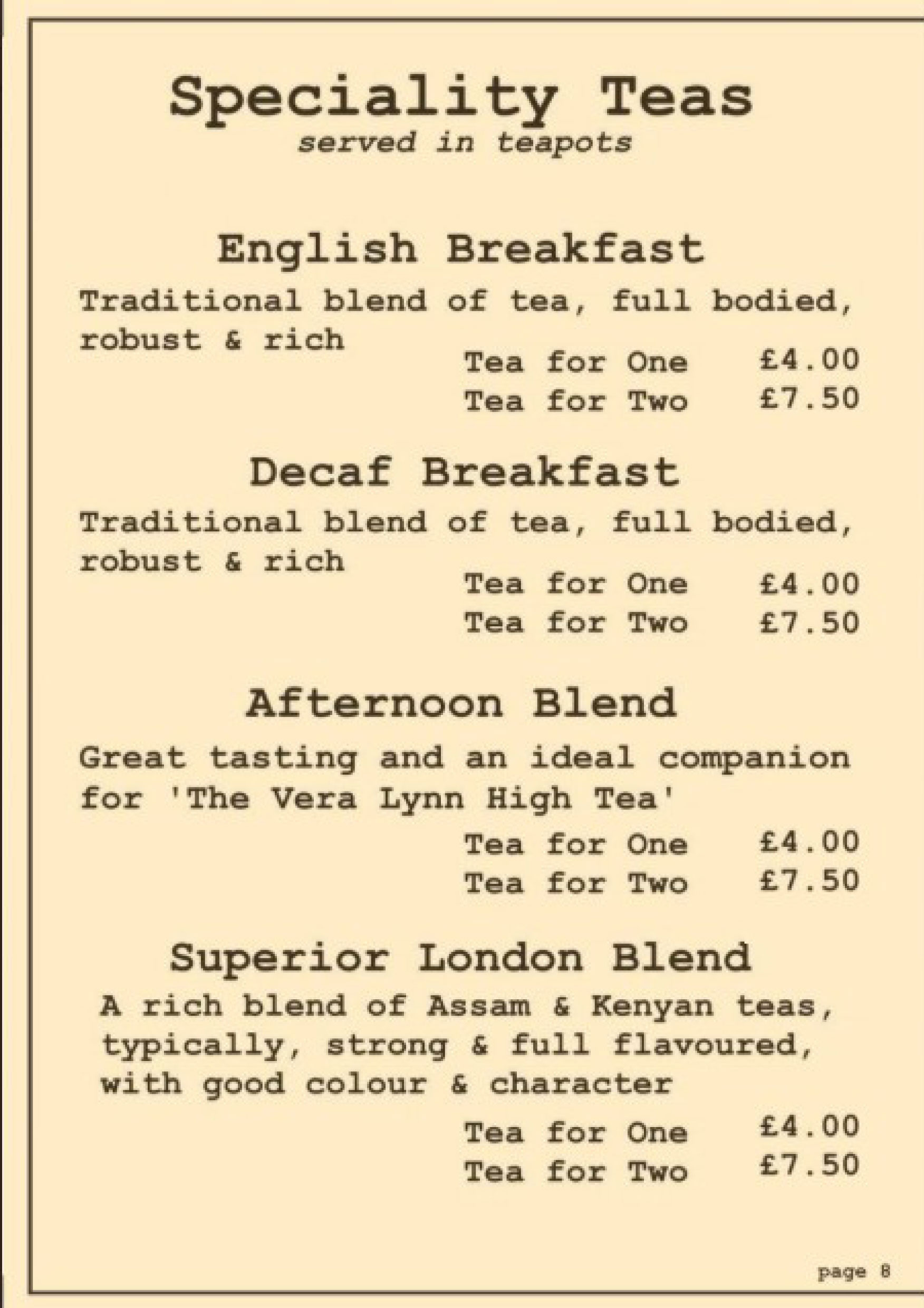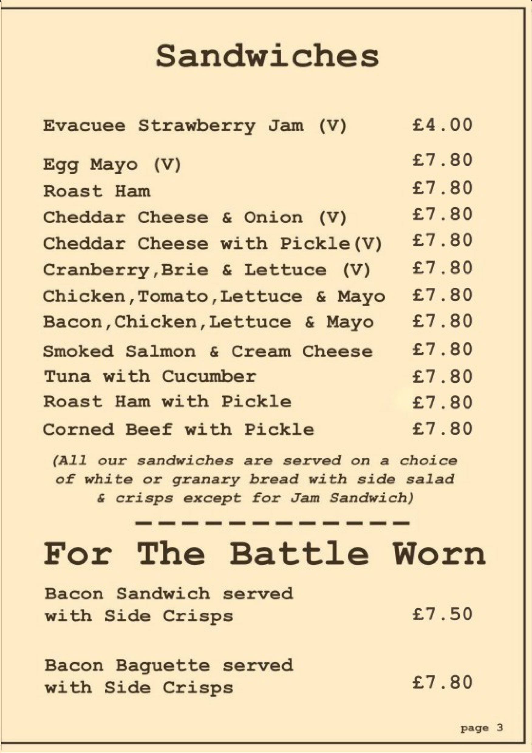 Don’t forget to peruse our “ration book” menu, brimming with delicious food and drinks. And for those who like a tipple with their tea, fear not – we’re fully licensed!